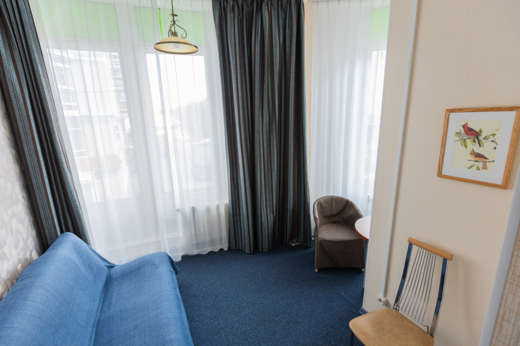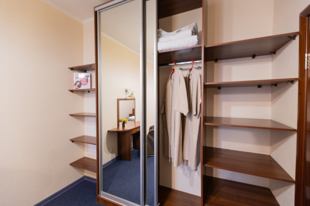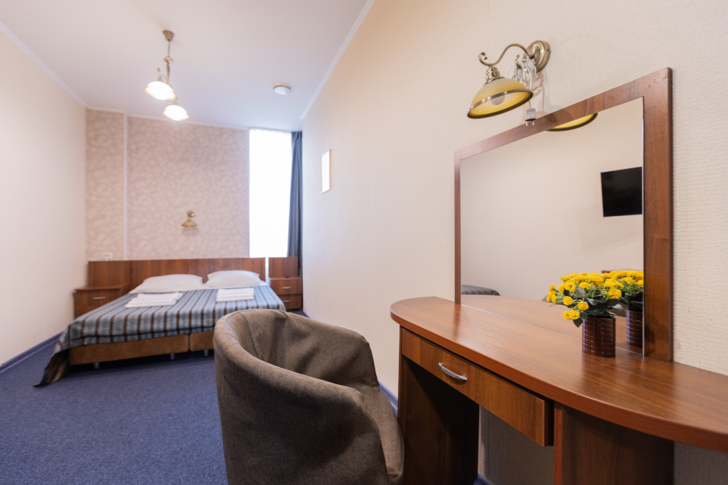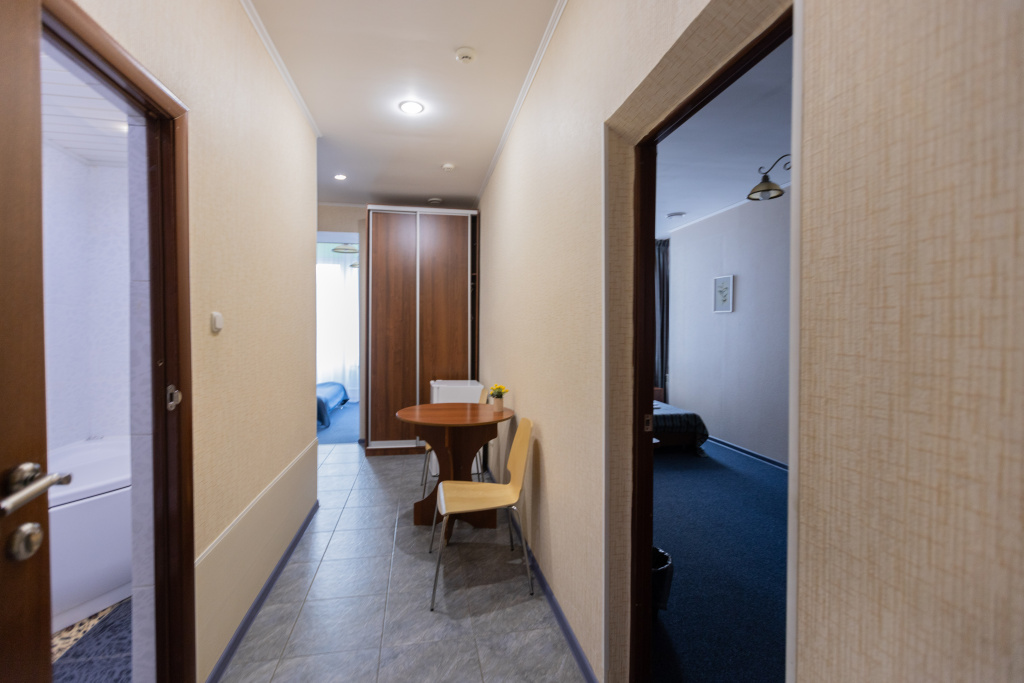 В оснащение номера входит холодильник, микроволновая печь, набор приборы+посуда, электрочайник, фен. Предоставляются халаты, тапочки. Дополнительное место -720 рублей/сутки.