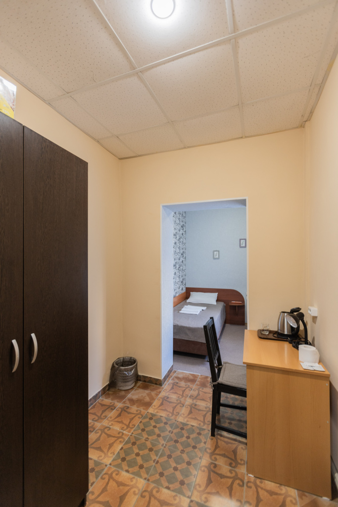 Одноместный номер с односпальной кроватью без санузла. Номера на 5 этаже. Без лифта.